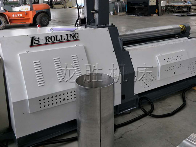 該機優(yōu)點是板材端部預彎及卷圓可以在同一臺設(shè)備上進行。